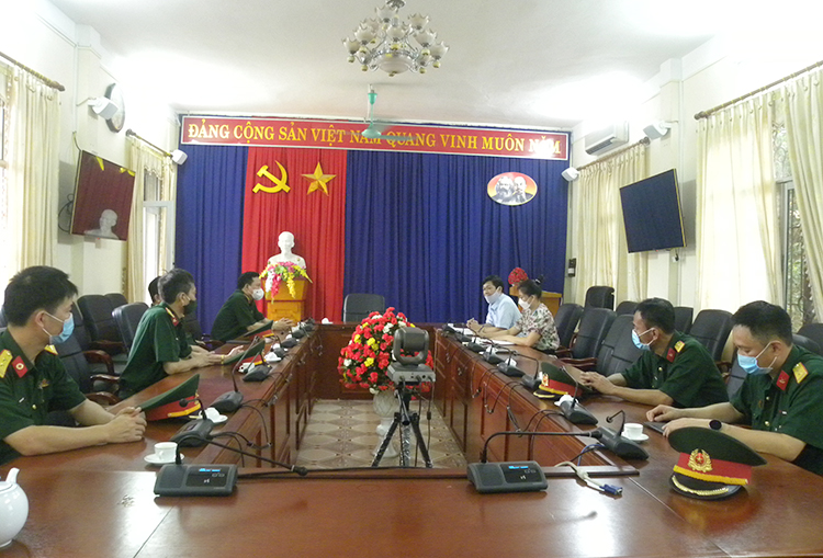 NGƯT.TS Ngô Xuân Hoàng - Hiệu trưởng làm việc với Bộ chỉ huy quân sự tỉnh Thái Nguyên về công tác chuẩn bị khu vực cách ly tập trung phòng, chống dịch Covid - 19
