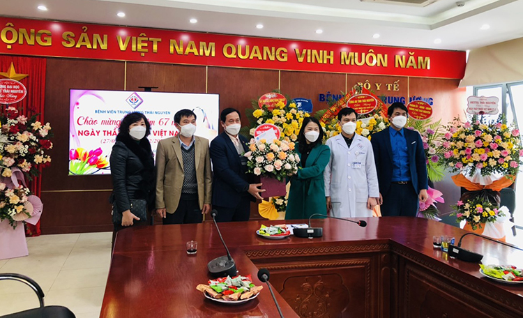 Trong dịp này Đoàn công tác của nhà trường cũng đã đến thăm và tặng quà chúc mừng cán bộ Y tế Bệnh viện A, Bệnh viện Trung ương Thái Nguyên, bệnh viện Lao và bệnh phổi Thái Nguyên, Bệnh viện Trường Đại học Y Dược Thái Nguyên, Trạm Y tế phường Thịnh Đán, Phòng khám đa khoa Hà Nội Thái Nguyên. Đến thăm và tặng quà các cán bộ Y tế tại các đơn vị, đại diện đoàn công tác Trường Cao đẳng Kinh tế - Kỹ thuật, PGS.TS Nguyễn Văn Bình - Phó Hiệu trưởng nhà trường đã bày tỏ sự trân trọng, tôn vinh những thành tích, đóng góp to lớn mà các thế hệ bác sĩ, thầy thuốc ngành ytế đã cống hiến trong suốt thời gian qua; chia sẻ những khó khăn, vất vả thầm lặng của mỗi cán bộ ngành y trong sự nghiệp chăm sóc sức khỏe nhân dân đồng thời cũng gửi lời chúc sức khỏe, hạnh phúc đến toàn thể đội ngũ cán bộ y bác sĩ, thầy thuốc đang công tác tại bệnh viện, trạm y tế và phòng khám. Chúc các cán bộ y bác sĩ, thầy thuốc phát huy phẩm chất người thầy thuốc nhân dân, xứng đáng với lời dạy của Bác Hồ: “Lương y như từ mẫu, thầy thuốc như mẹ hiền”.