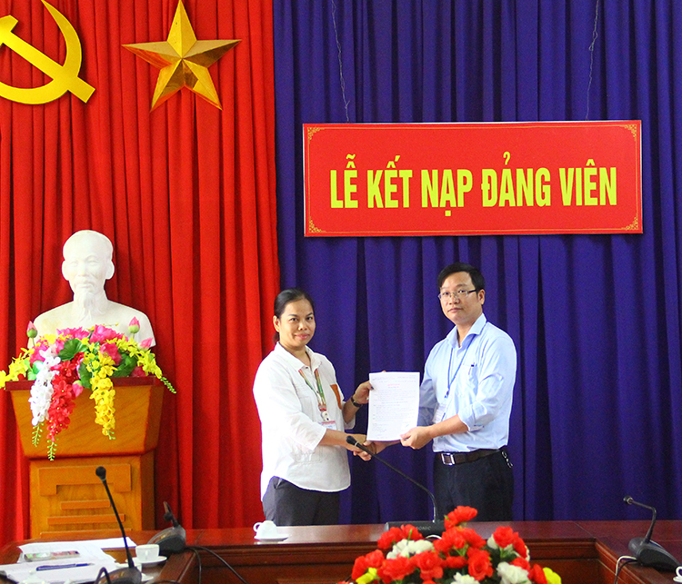 Sau khi nhận quyết định kết nạp, đồng chí Đảng viên mới đã đứng trước cờ Tổ Quốc, cờ Đảng và chân dung Chủ tịch Hồ Chí Minh kính yêu đọc lời tuyên thệ và hứa sẽ tiếp tục phấn đấu để luôn xứng đáng là người đảng viên gương mẫu, đóng góp sức mình thực hiện thành công nhiệm vụ chính trị của Chi bộ góp phần xây dựng Chi bộ và Đảng bộ Trường ngày càng vững mạnh.