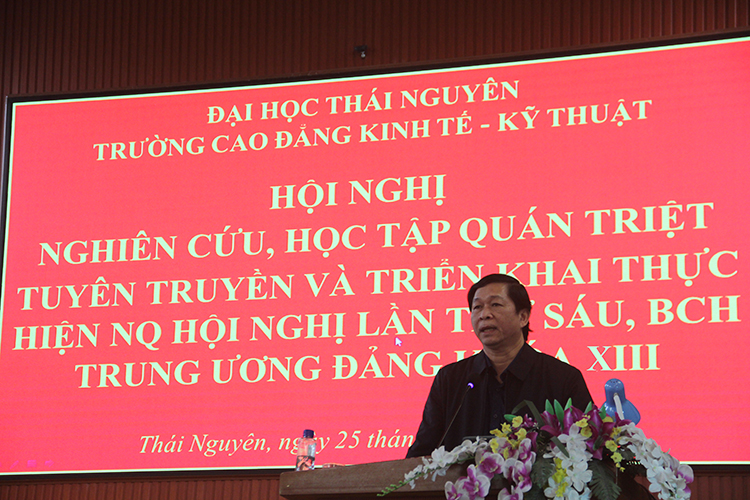 Đảng ủy Trường Cao đẳng Kinh tế - Kỹ thuật tổ chức Hội nghị nghiên cứu, học tập quán triệt tuyên truyền và triển khai thực hiện nghị quyết Hội nghị lần thứ sáu BCH trung ương Đảng khóa XIII