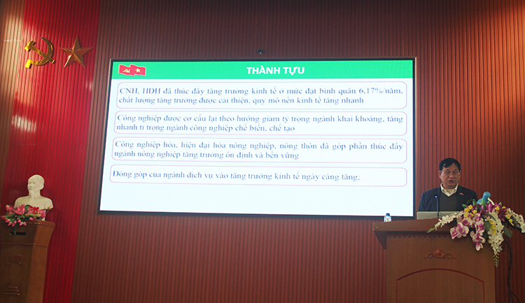 Đồng chí Nguyễn Văn Bình - Phó bí thư đảng ủy truyền đạt các chuyên đề của Nghị quyết Trung ương 6 khóa XIII tại Hội nghị