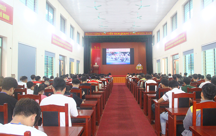 Tham dự chương trình có: ThS. Trần Minh Trường – Phó Hiệu trưởng Nhà trường; cán bộ đội tuyên truyền phòng cảnh sát Giao thông Công an tỉnh Thái Nguyên; đại diện lãnh đạo các đơn vị Phòng, Khoa , Trung tâm và hơn 400 sinh viên K18, K19.