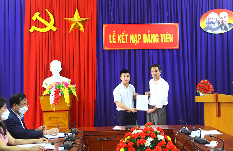Sau khi nhận quyết định kết nạp, đồng chí Đảng viên mới đã đứng trước cờ Tổ Quốc, cờ Đảng và chân dung Chủ tịch Hồ Chí Minh kính yêu đọc lời tuyên thệ và hứa sẽ tiếp tục phấn đấu để luôn xứng đáng là người đảng viên gương mẫu, đóng góp sức mình thực hiện thành công nhiệm vụ chính trị của Chi bộ góp phần xây dựng Chi bộ và Đảng bộ Trường ngày càng vững mạnh.
