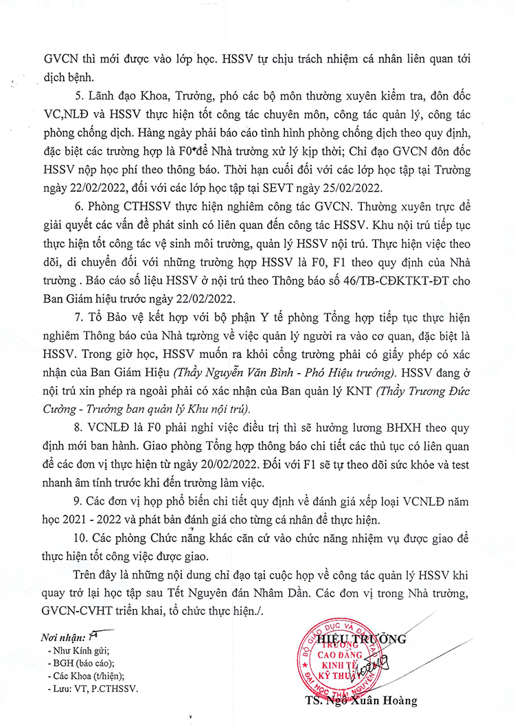 Thông báo kết luận tại cuộc họp ngày 16/02/2022