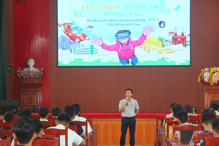 Tại chương trình, các tân sinh viên K19 chuyên ngành Công nghệ Kỹ thuật Điện điện tử đã được nghe đại diện Công ty GOERTEK VI NA giới thiệu về Công ty, được xem clip về quá trình học tập và làm việc của cựu sinh viên nhà trường vừa được tuyển dụng vào làm việc tại Công ty, được nghe lãnh đạo Công ty giới mô hình đào tạo 1+1+1- những lợi ích khi đăng ký tham gia chương trình và giải đáp những câu hỏi của các bạn sinh viên.