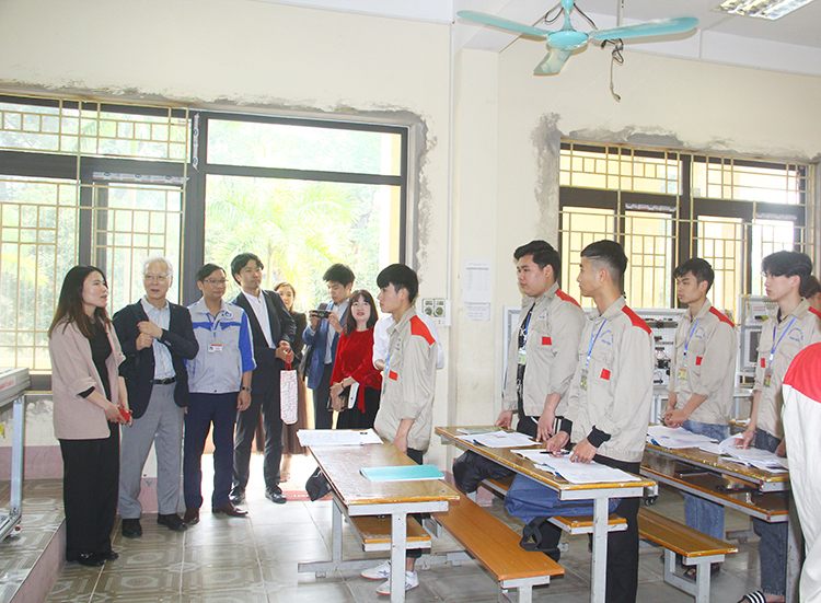 Trong buổi chiều cùng ngày, Nghiệp đoàn đã đến thăm xưởng thực hành khoa Công nghệ Ô tô, Phòng thực hành Khoa Điện và lớp học tiếng Nhật.