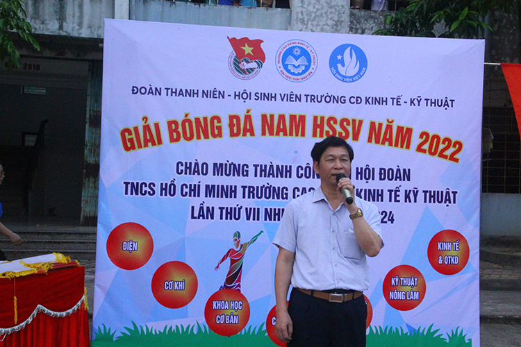 Phát biểu tại Lễ khai mạc giải đấu, NGƯT.TS Ngô Xuân Hoàng - Bí thư Đảng ủy, Hiệu trưởng nhà trường đã biểu dương tinh thần luyện tập thể dục thể của nam học sinh, sinh viên Nhà trường trong thời gian vừa qua, sau một thời gian dài bị ảnh hưởng vì đại dịch Covid 19. Thông qua giải đấu, thầy Hiệu trưởng mong muốn phong trào thể dục thể thao của học sinh và sinh viên trong toàn trường ngày càng được phát triển mạnh, đồng thời chúc các cầu thủ sẽ thi đấu trên tinh thần giao lưu, trung thực và đoàn kết để cống hiến những bàn thắng hay, đẹp mắt, cho các khán giả thể hiện nét đẹp trong HSSV trường Cao đẳng Kinh tế - Kỹ thuật.