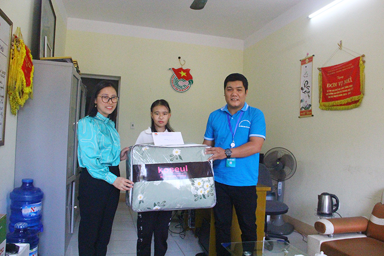Để giúp đỡ sinh viên Dương Thị Dừa, Đoàn thanh niên, Hội sinh viên trường Cao đẳng Kinh tế - Kỹ thuật đã trao một xuất quà trị giá 500.000 đồng và một chiếc chăn ấm cho mùa đông sắp đến. Với tinh thần tương thân tương ái, Ban chấp hành Đoàn thanh niên, Hội sinh viên nhà trường nhận đỡ đầu giúp đỡ em trong thời gian em học tập tại trường. Chúc cho em luôn mạnh khỏe và học tập thật tốt.