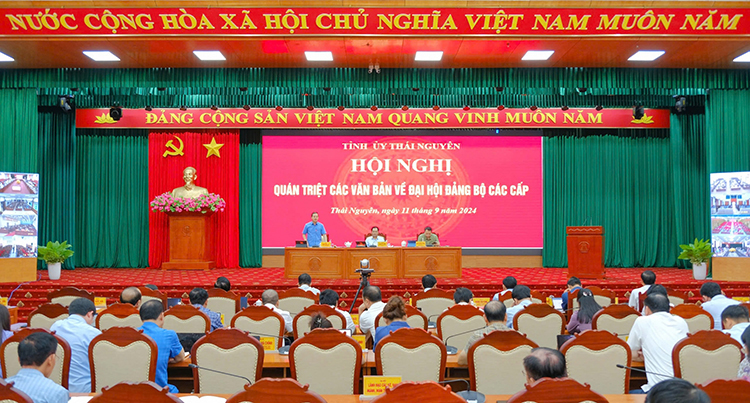 Tại Hội nghị, các đại biểu đã được nghe quán triệt nội dung Chỉ thị số 35-CT/TW ngày 14/6/2024 của Bộ Chính trị về đại hội đảng bộ các cấp tiến tới Đại hội đại biểu toàn quốc lần thứ XIV của Đảng; Hướng dẫn số 27-HD/BTCTW ngày 26/8/2024 của Ban Tổ chức Trung ương về một số nội dung Chỉ thị số 35-CT/TW ngày 14/6/2024 của Bộ Chính trị; Kế hoạch số 186-KH/TU ngày 30/7/2024 của Ban Thường vụ Tỉnh ủy về Đại hội đảng bộ các cấp tỉnh Thái Nguyên tiến tới Đại hội đại biểu toàn quốc lần thứ XIV của Đảng và các văn bản, hướng dẫn liên quan.